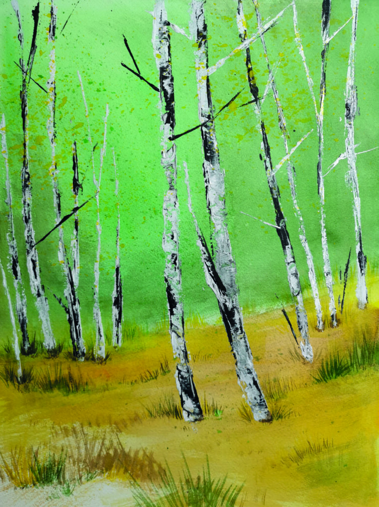 Aquarell, Acrylfarben, Buntstifte , Öl-Pastell