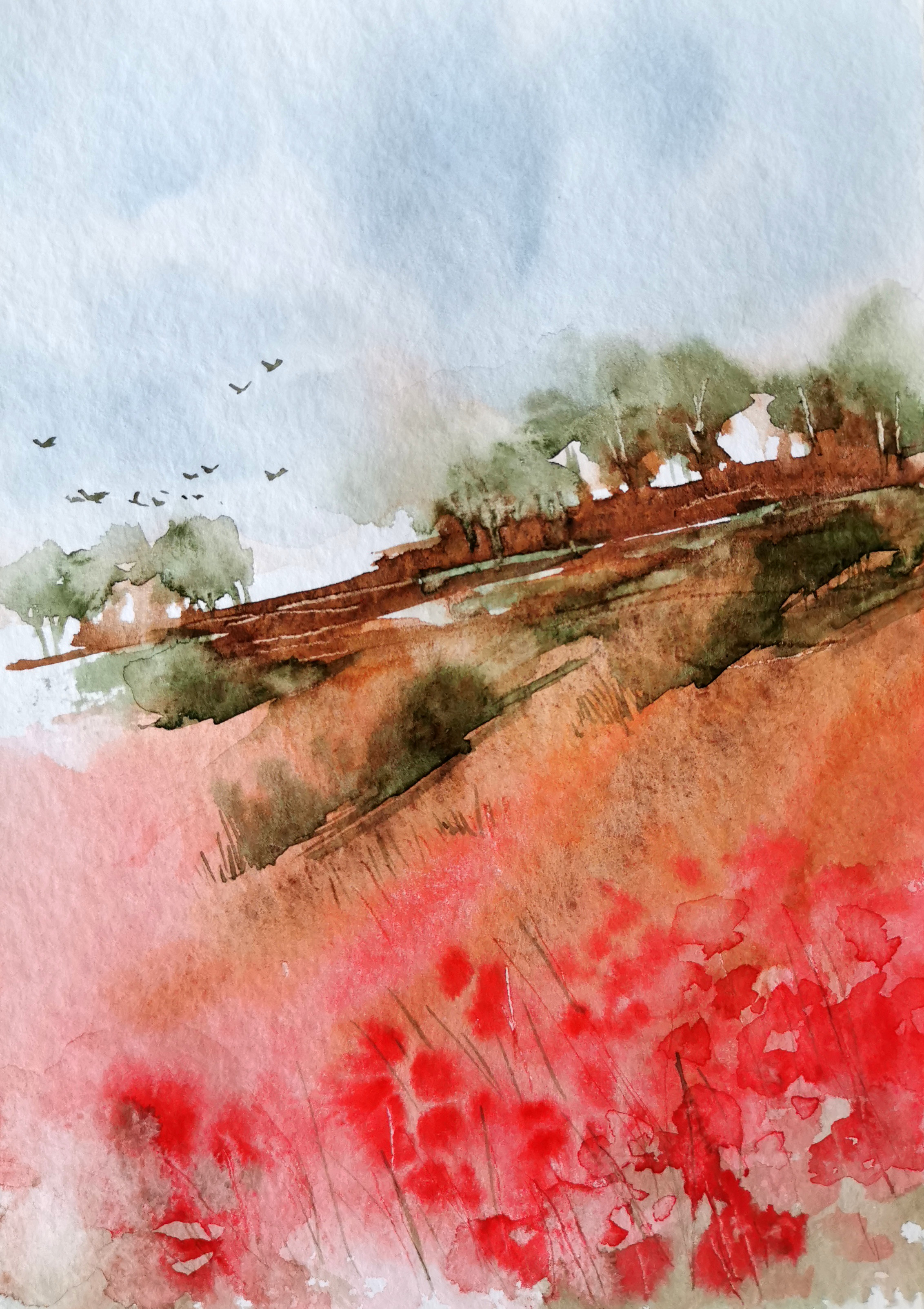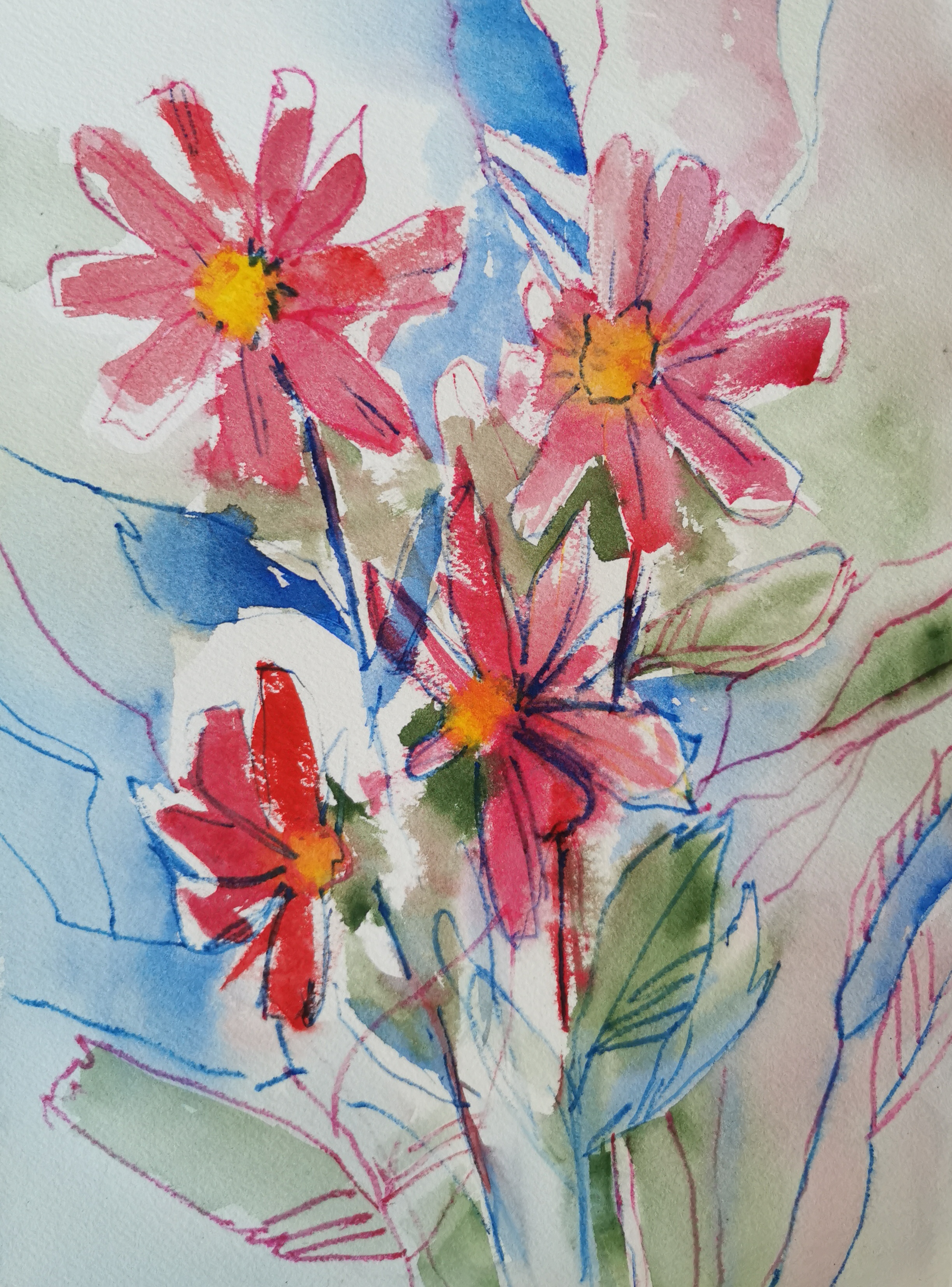 Zu guter Letzt kannst du dein neues Wissen einsetzen, um dein erstes Aquarellbild zu malen. Zum Beispiel Blumen oder eine einfache Landschaft. Der Kurs wird in einer Gruppe von 2 bis 7 Teilnehmer/Innen abgehalten.