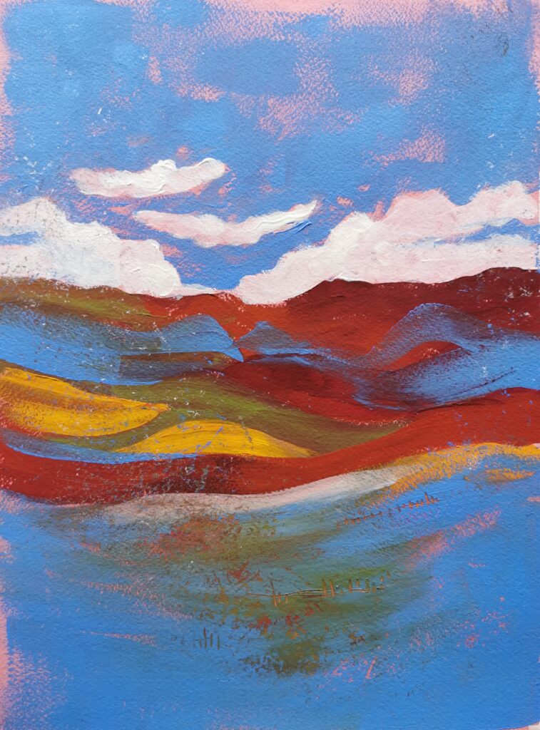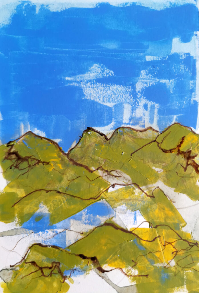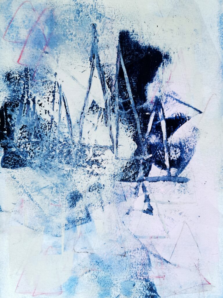 Ich beginne ein neues Bild mit einer Idee von meinem Motiv. Meistens arbeite ich diese Idee in Gedanken schon aus. Dann fange ich an zu malen und lasse meinen Gedanken dabei freien Lauf. Oft entwickelt das Bild dann sein Eigenleben und verlässt die ursprüngliche Idee. Hier beginnt für mich der spannende Teil. Ich abstrahiere Bekanntes, vereinfache was zu viel ist und lenke den Blick auf das Wesentliche. Ich möchte nicht die Realität abbilden, sondern einen Einblick in die Fülle von Möglichkeiten geben, die einem begegnen, wenn man dem Unperfekten Raum gibt.
