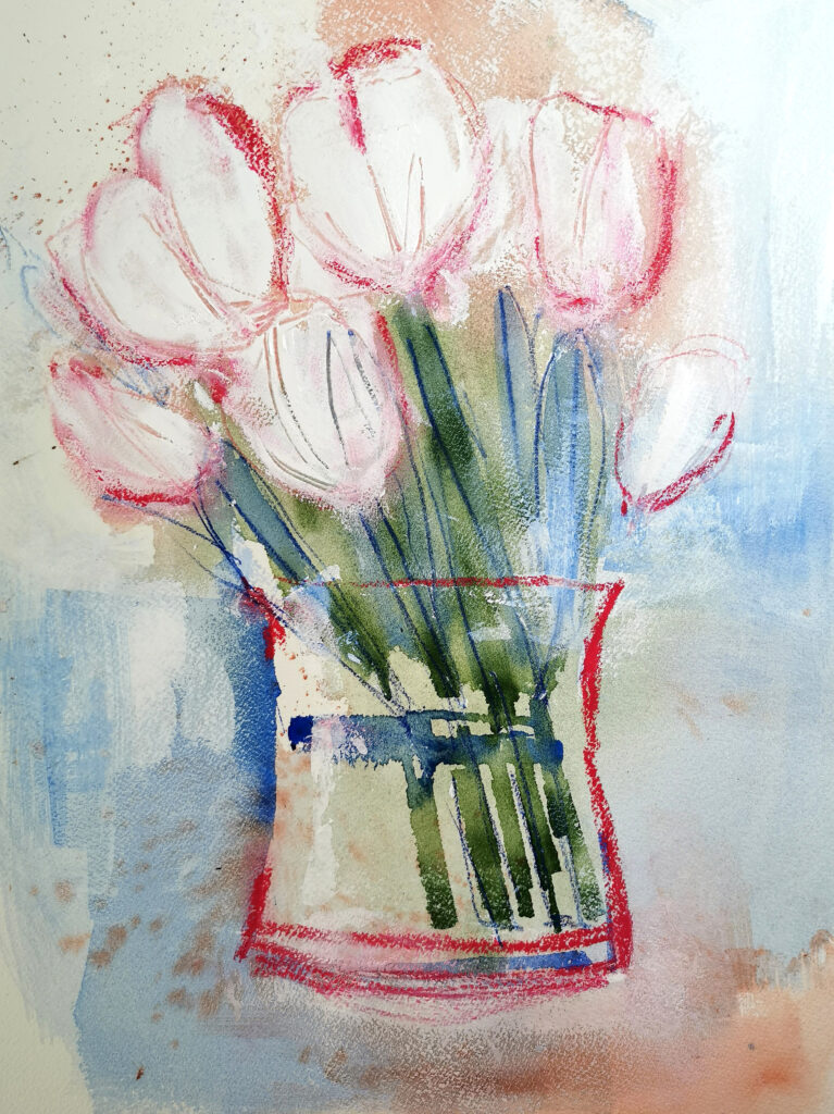 Dann bist du in meinem Aufbaukurs Aquarell genau richtig. Gemeinsam erarbeiten wir verschiedene Techniken und lernen Hilfsmittel kennen, um dein Aquarellbild noch interessanter zu machen.